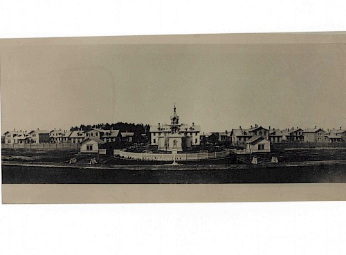 Кроме 4-х каменных двухэтажным корпусов и дезинфекционной камеры, все остальные здания были построены из соснового дерева на каменных фундаментах.